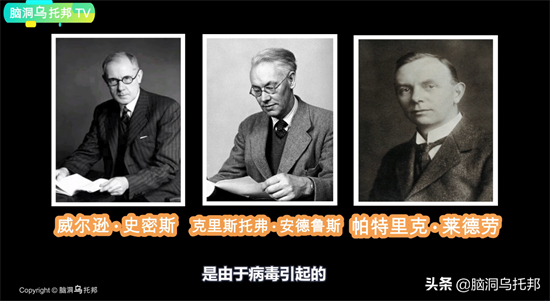 在当时,人类甚至都不知道流感是由于病毒引起的。直到1933年,英国科学家威尔逊·史密斯(Wilson Smith)和克里斯托弗·安德鲁斯(Christopher Andrewes)以及帕特里克·莱德劳(Patrick Laidlaw)分离出第一个人类流感病毒,并命名为H1N1,从此人们才知道流行性感冒是由流感病毒造成的。
