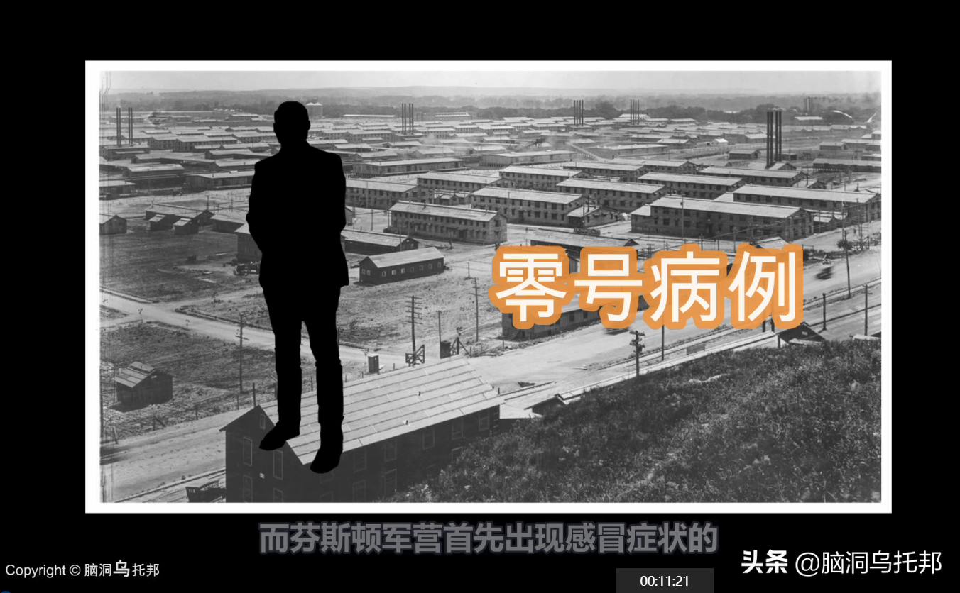 而芬斯顿军营里首先出现感冒症状的那位士兵就是资料记载上的西班牙流感的零号病例。当时,正处于第一次世界大战期间,美国有36个新兵训练营。来自全国各地的新兵都会在这里集中训练,然后被送到其他营地。巨大的人员流动性,以及恶劣的饮食和居住条件,让这36个训练营成了病毒天然的温室。
