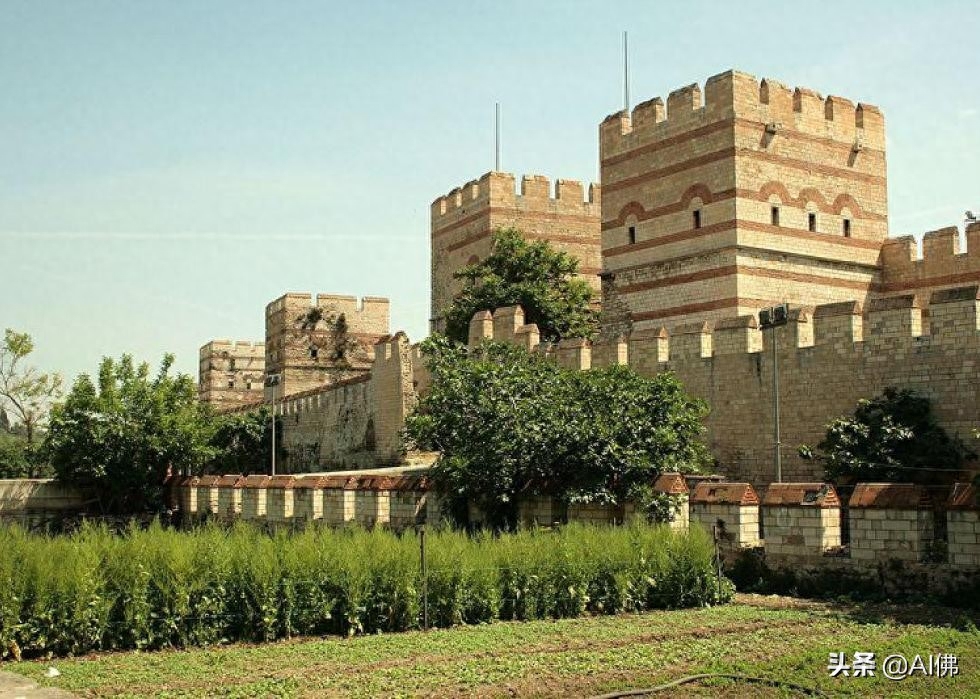 君士坦丁大帝首先在罗马帝国的新首都周围建造了城墙,但直到狄奥多西二世统治时期,城墙才成为古代世界最大、最坚固的防御工事。城墙旨在使这座城市坚不可摧,经受住了 800 年的敌人围攻和地震。直到 1204 年,当攻击者从敞开的门进入时,它们才倒下,大部分仍然矗立在土耳其伊斯坦布尔。