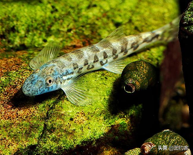 学名厚唇原吸鰍,仅分布于广西大瑶山地区,俗称熊猫鲨、金带鳅、熊猫爬岩鳅。