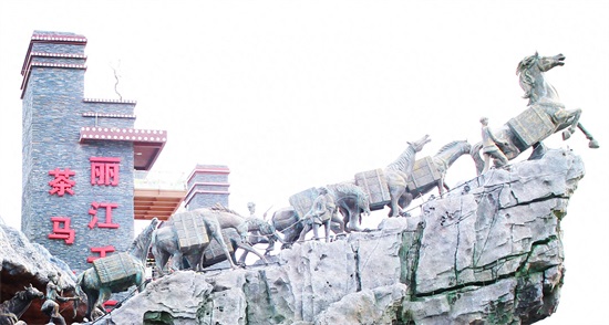 10、马帮群雕:丽江以茶马古道而兴,马帮是茶马古道上不朽的传奇!马帮群雕高30米、宽80米,是大型马帮文化群雕,它和烈焰火山融为一体。群雕展现了一组马帮行进在悬崖峭壁上的惊险画面,向世人展示了一条世界上地势最高、山路最险、距离最遥远的茶马文明古道。千百年来,在崎岖的茶马古道上每天都上演着马帮们惊天地、泣鬼神的生命乐章。