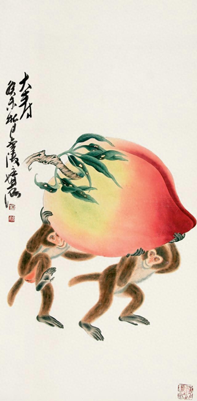 不过,既然“猴”与“侯”谐音。古代的文艺作品,猴常以吉祥符号的角色入图,例如大猴背个小猴,象征“辈辈封侯”,若猴子背个布袋则是“代代封侯”;“马上封侯”表现的则是在马背上坐着猴子;画一棵树,猴子爬到树上,旁边加一只蜜蜂,树下是一头跪着的象,取“封侯拜相”之意……所有这些,都表达了人们的美好愿望。
