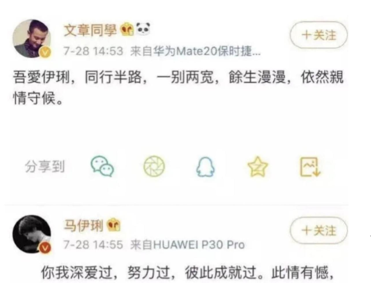 得到马伊琍原谅的文章直接发文出来道歉,随后玛丽也发文称自己原谅了文章,并且称婚姻不易且行且珍惜。