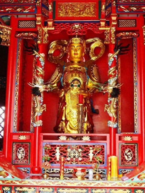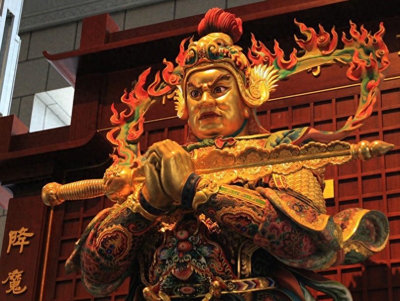 走进汉传佛教的寺庙,看到勒菩萨身后的一位威猛将军,他是佛教护法神韦陀菩萨。韦驮菩萨能驱除邪魔,保护佛法,形像一般是童子面,身披甲胄,手持金刚杵。韦陀菩萨发愿,护持前面九百九十九尊佛陀的教法,令那些魔不敢来侵犯。贤劫千佛中最后成佛,名为胜解佛又称楼至佛。成佛时把前面九百九十九尊佛陀的所有教法,一起弘扬。