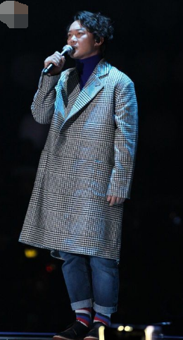 陈奕迅似乎特别喜欢穿比自己大几号的衣服。这是在2014年MAMA上的造型,虽然显得有点“邋遢”,但是不妨碍他现场十米的气场,一首《浮夸》引起了全场大合唱,台下一众韩星也听得十分入迷!
