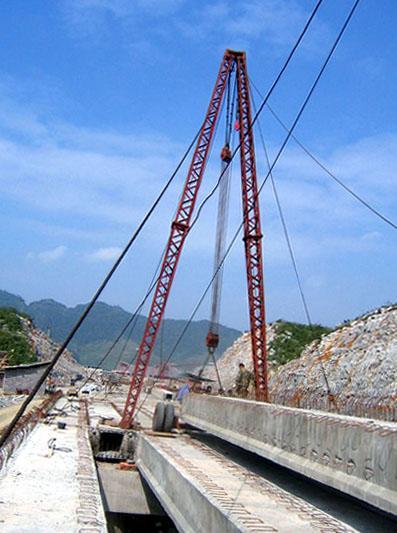 桅杆式起重机制作简单、装拆方便,起重量较大(可达100t以上),能用于其它起重机械不能安装的一些特殊、大型构件或设备。缺点是:起重半径小、移动困难,需拉设较多的缆风绳。
