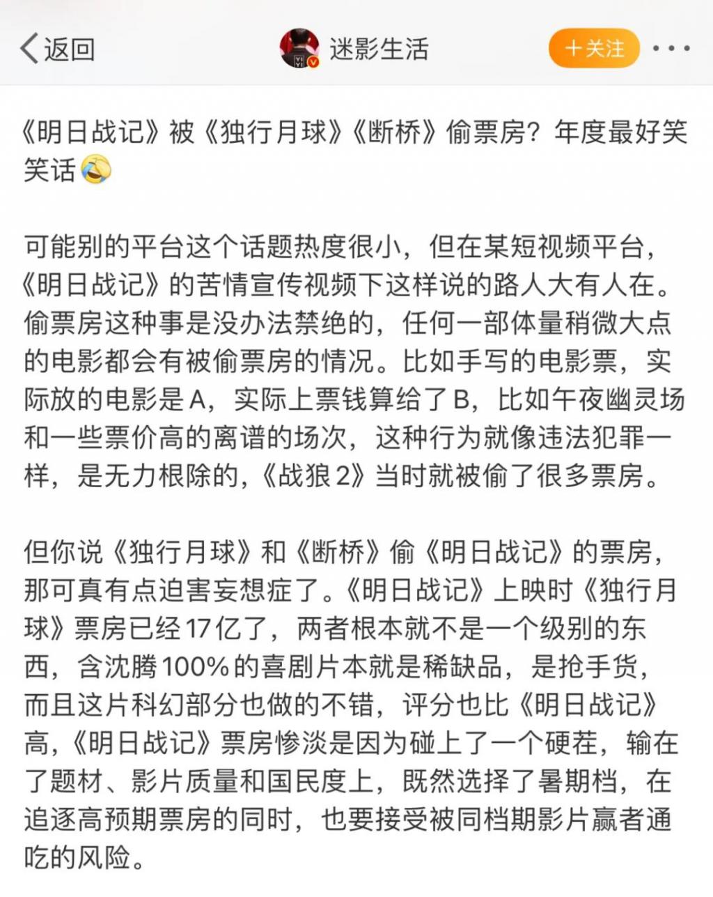 电影那边,蹦出来说竞争对手偷票房、泼脏水的主创不是一位两位,逼迫不少片方不得不出来回应荒谬的指控。
