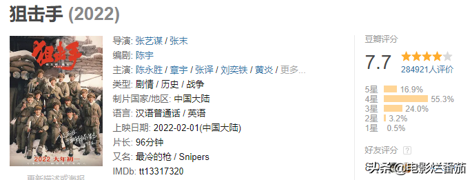 第二名、《狙击手》 豆瓣7.7分