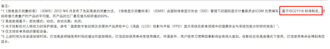 Tips:ANSI流明和ISO流明(资料来源于百度百科)