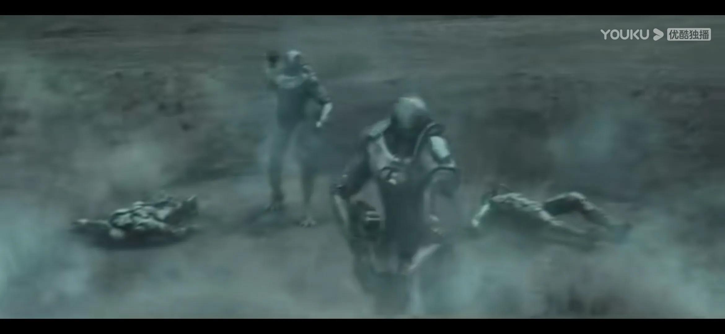 这是唯一一个外星人比较清楚的镜头了!感觉这外星人长得有点儿草率了,这tmd就像是锡箔纸捏出来的一样!