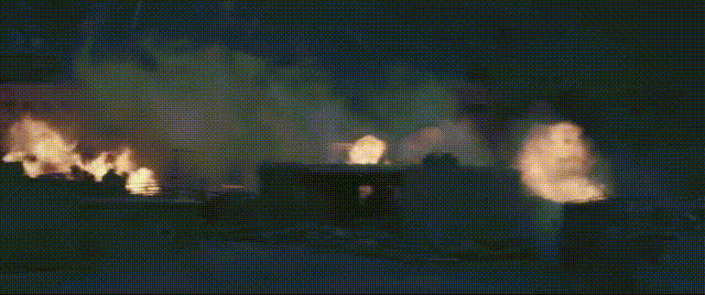小分队来到一个小镇上,现场浓烟滚滚,是经过激烈交战的样子!但是感觉和外星生物交战不搭边吧,更像是人类之间发生的战争冲突之后的场景嘛。