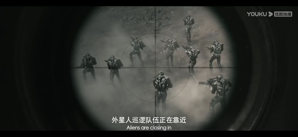 撤离途中遭遇外星人的无人机袭击,全员立即反击,同时后面的外星人也追上来了,但怎么追上来的我不知道,导演也没给人家外星人镜头啊,可能是走过来的吧[捂脸]