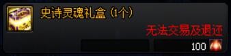售价100不渝之咏,不限次数,可以通过NPC将账号绑定的史诗灵魂兑换成可以交易的灵魂之源礼盒(1个),每天限制兑换10个,跨五拍卖行中灵魂之源礼盒(1个)的价格约为6.5W金币。