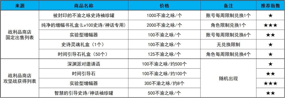 售价500不渝之咏,有可能开出史诗或神话装备,兑换的优先级不是太高,小号非常缺装备的情况下可以选择兑换。
