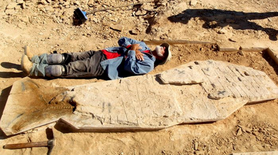一名游客发现了一块距今约一亿年、长3米的鱼类化石(供图/王治钧)