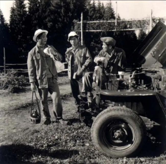 在《沙漠驼铃》中扮演了一名地质队员(中)