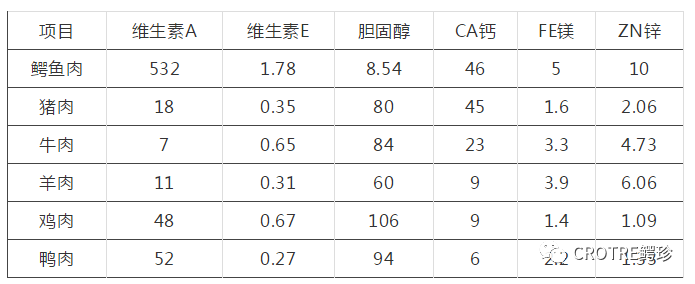 鳄鱼肉营养成分表
