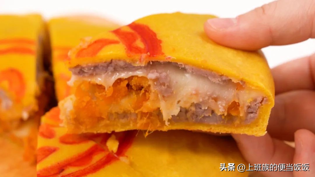 一个就能喂饱全家,里面还有三层扎实夹心,有糯叽叽的麻薯和芋泥,有咸香的蛋黄肉松,切开还会拉丝~