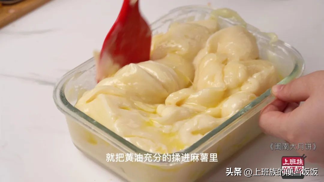 等不烫手了就把黄油充分地揉进麻薯里。
