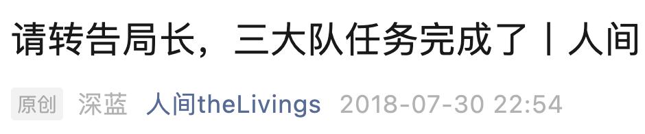 2018 年,网易旗下账号发表了一篇叫做《请转告局长,三大队的任务完成了》的纪实文学,作者深蓝。