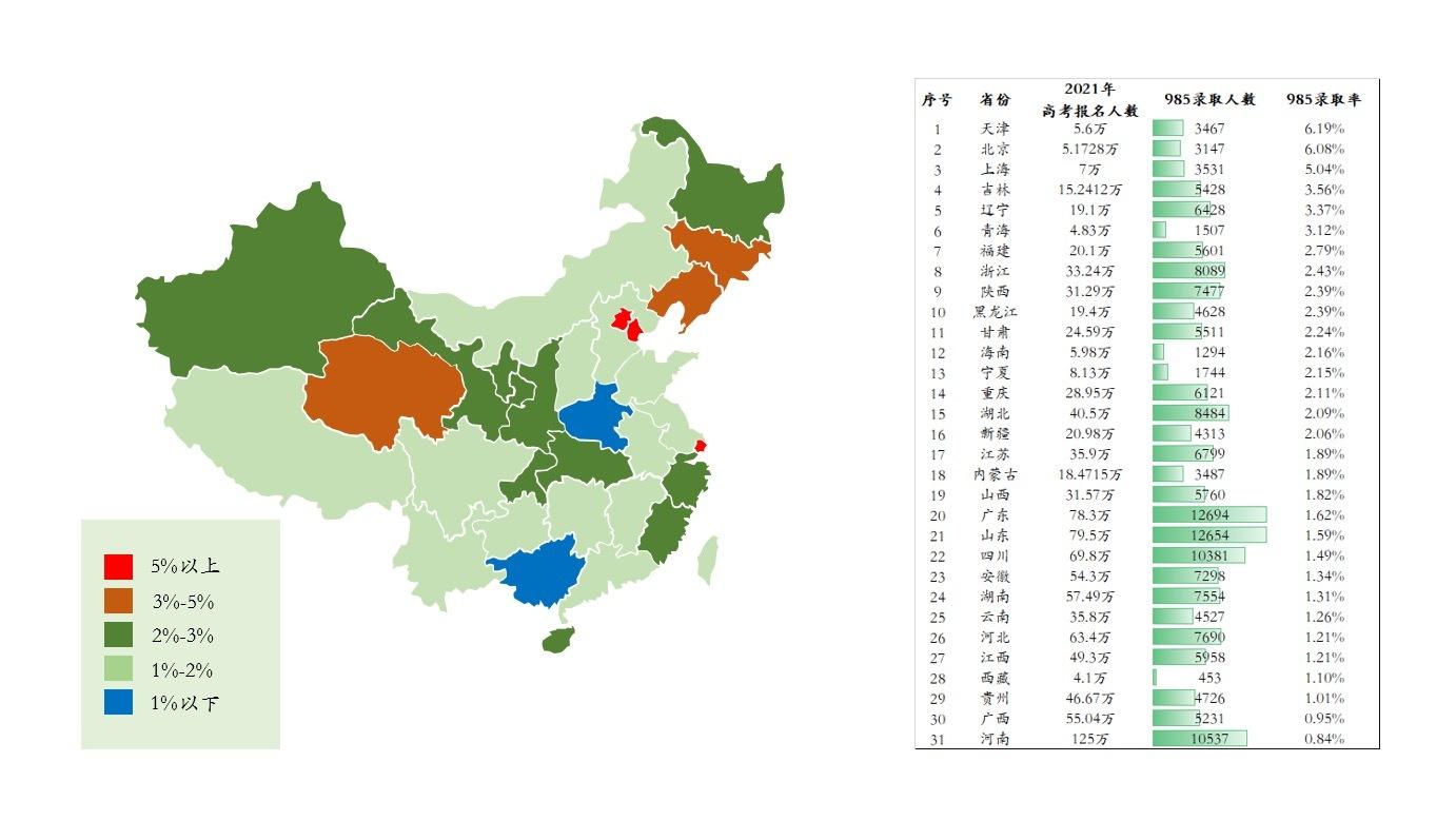众所周知,截至目前教育部公布的数据全国高等学校共计3012所,普通高等学校2756所(本科1270所、专科1486所),其中学子们比较向往的全国985大学名单才有39所,我们再来看一组数据,2021年高考,全国总计高考报名1094.7万人左右,其中,全国985高校录取人数18.3万左右,录取率1.67%;211高校录取人数52万左右,录取率4.75%。足以说明“千军万马过独木桥”这句古话,同时未来这些院校继续增加的可能性微乎其微,每一年都在增长的高考报名人数和几乎不变的院校数量,这样的录取比例是让众多考生都望而生畏的。