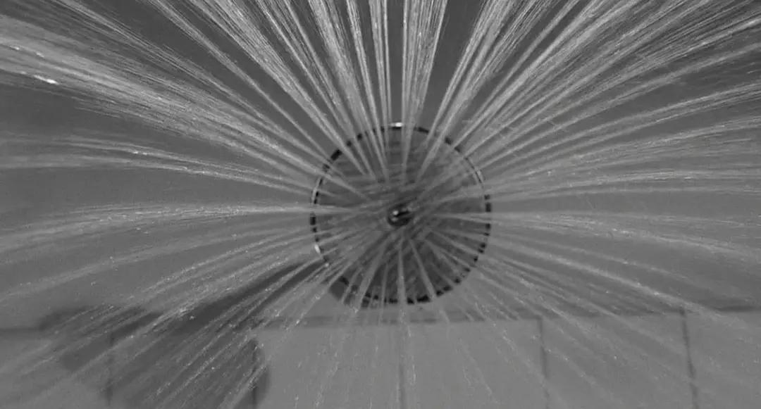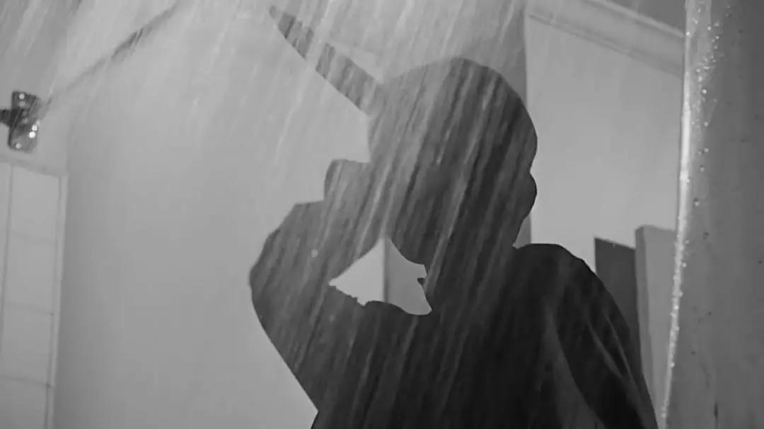 《惊魂记》利用蒙太奇的手法,让凶手猎杀女主和浴帘喷射的水流之间的镜头来回切换,女人狰狞的惨叫和冒着寒光的尖刀交相辉映,带给观众巨大的急促感,影片丝毫没有因为是黑白图像而降低血腥感。