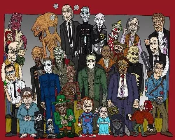 其实无论哪国恐怖片,都反映了人心远比妖魔鬼怪可怕的至理名言。文章的结尾,送大家一张恐怖电影角色合照,大家看看有多少人认识的吧。