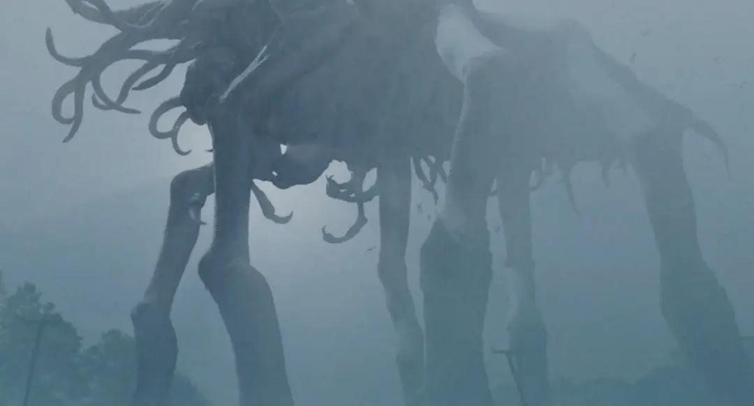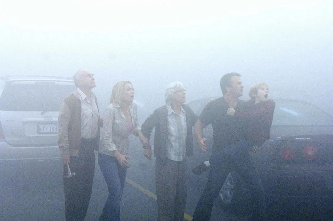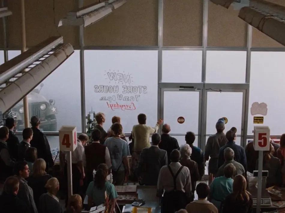 与其他恐怖片发生在黑夜的故事设定不同,《迷雾》用白色浓郁的雾气制造了什么寂静的诡异感,安静的环境潜伏着巨型生物,本身就能产生巨大的压抑感。