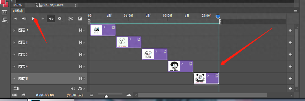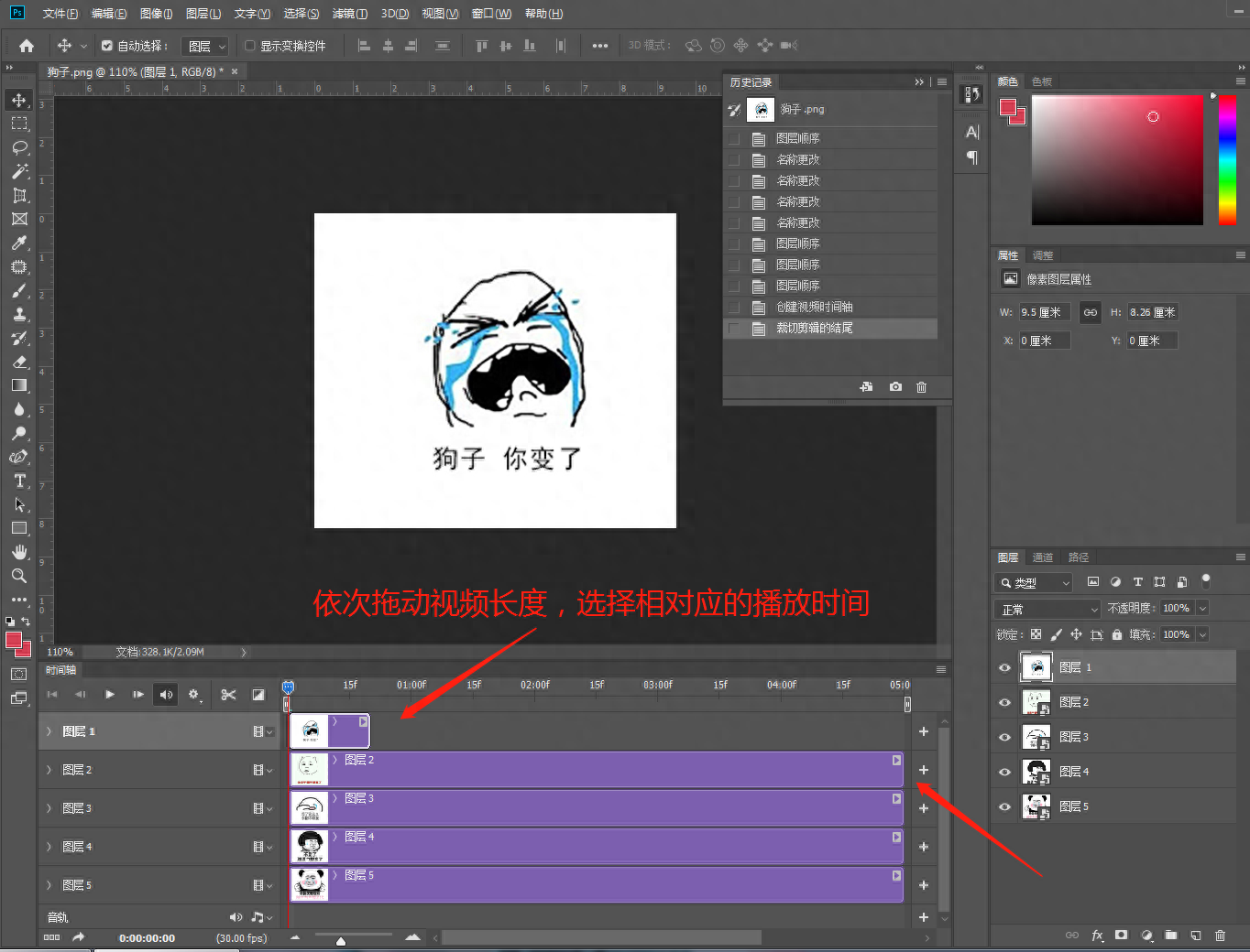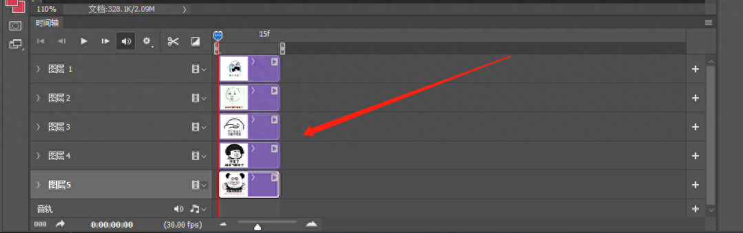 第一步,将准备好的表情包素材依次拖进Photoshop中,按照想要的顺序排列好。顺序错误的话,拖动图层改变图层顺序。