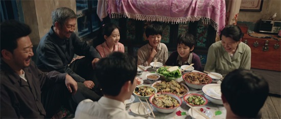 有场戏是他看见桌子一大盘饺子,眼睛瞬间蹭蹭放光,看到大爸给心杰夹饺子,立马上杆子说“上房揭瓦也需要力气”,是真没把自己当外人。