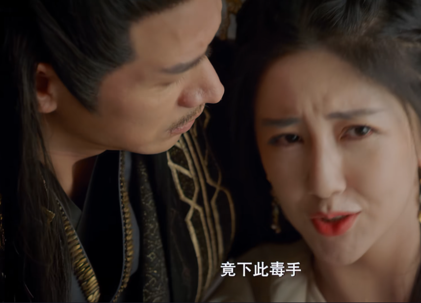 眼看宠妾倒在面前,以死诬陷世子,何晟铭饰演国王深信不疑。