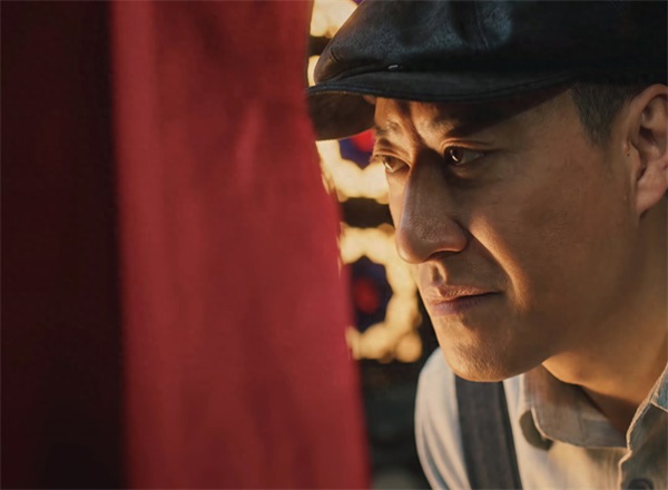 此时一张熟悉的脸从拍照的幕帘背后悄悄露出来,于震饰演的大反派,邝庆奎。