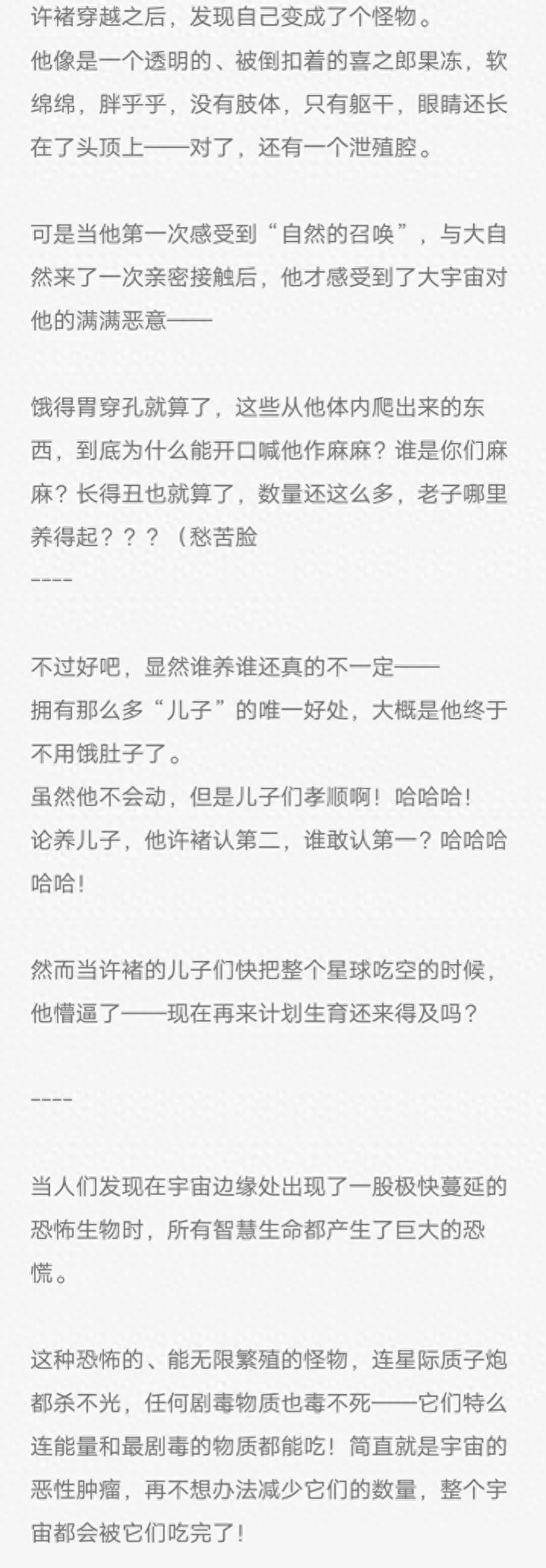 在不久的将来,这些小虫子们也将会和那些在星空中遨游的大鱼一样,可以在星空遨游,靠恒星补充自身能量,减少对食物的消耗。