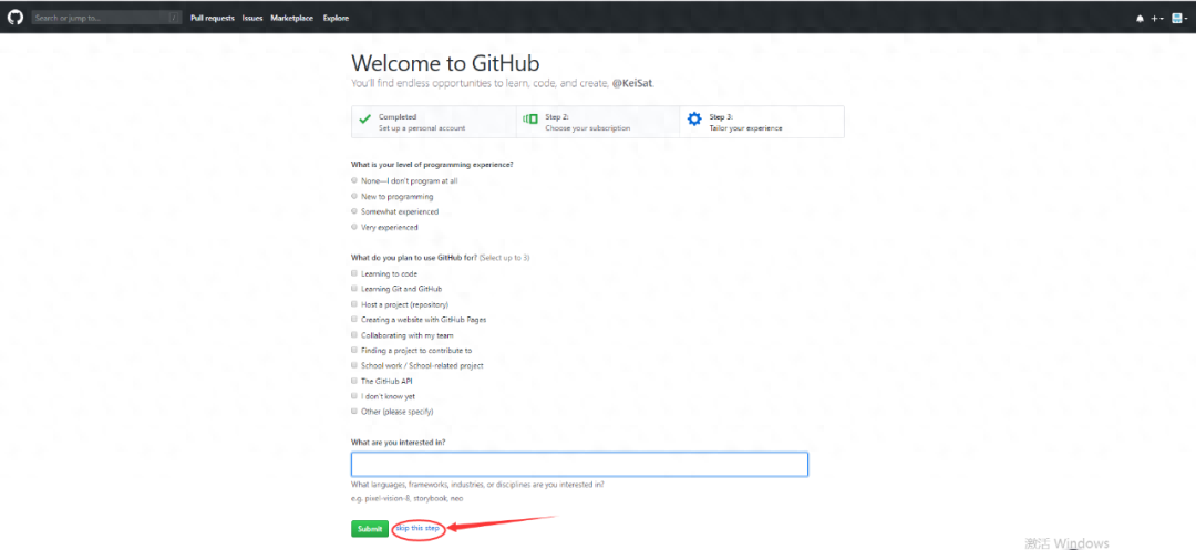 直接点击 skip this step ,进入注册的邮箱确认即可。