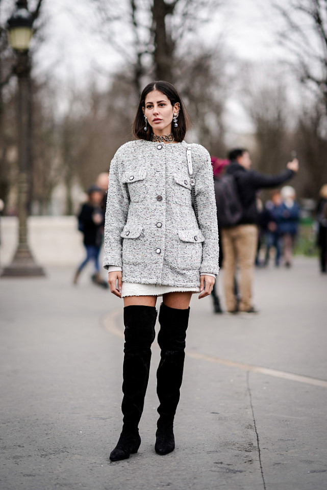 长皮靴其实是有着长裤的温暖的效果的,搭配小短裙穿很能适应冬季的温度,好看还保暖,还有显腿长的功效。