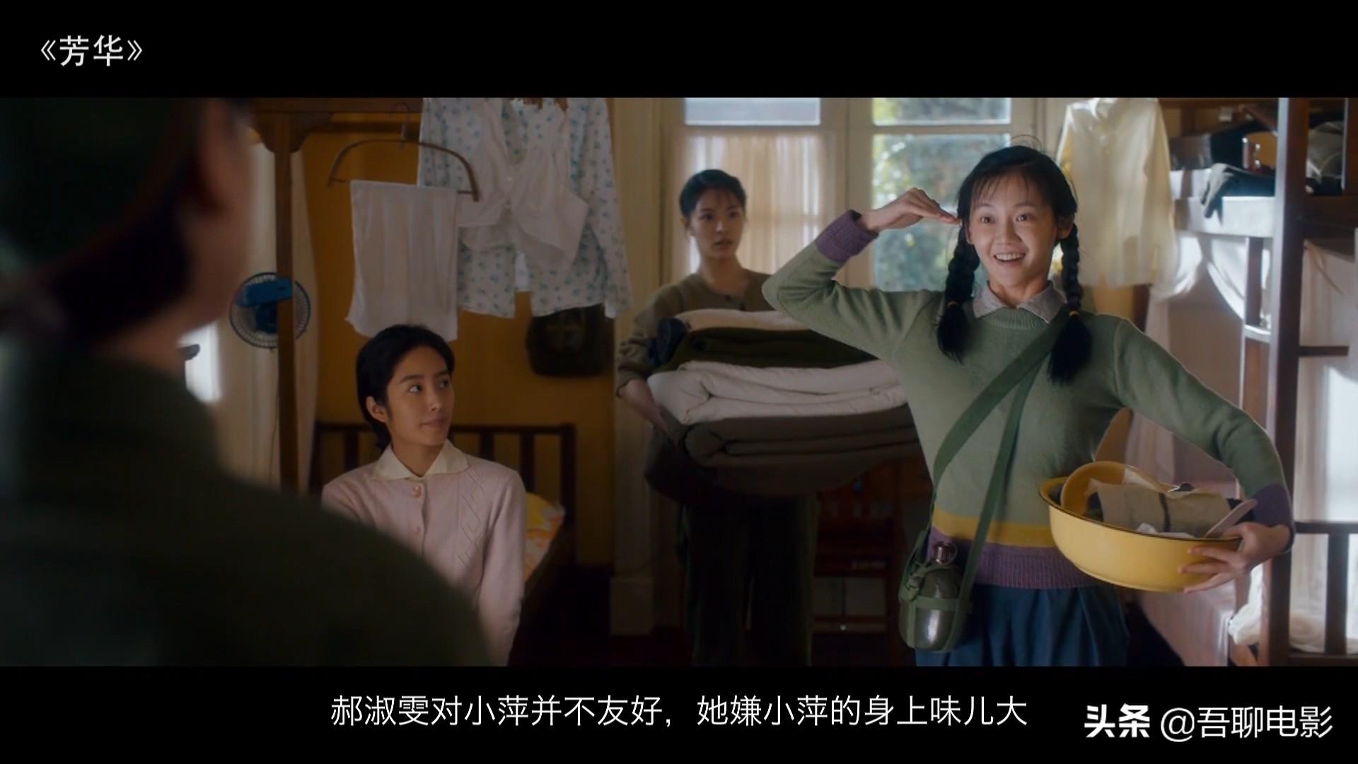 一首歌瞬间把我们带入那个岁月,是韩红翻唱的《绒花》,屏幕显示:谨以此片献给你们和我们的芳华,我看网上有很多分析里面人物性格,有不少黑暗和讽刺的意味,但是以我看来,这部电影没有指责谁,也没有埋怨谁,他们的生活也是我们现在生活的常态,我们就静静得听了一个那个年月的故事,不管结局如何,那些都是她们的芳华,好了,今天的节目就到这里,感谢收看,我们下期见,拜拜!