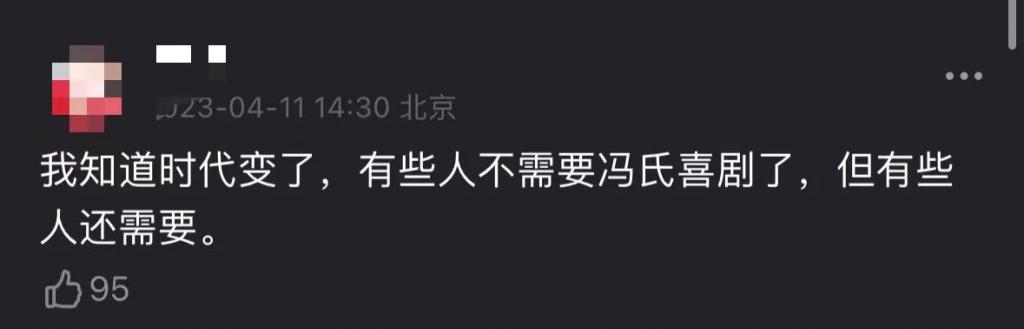 " 我知道时代变了,有些人不需要冯氏喜剧了,但有些人还需要。"