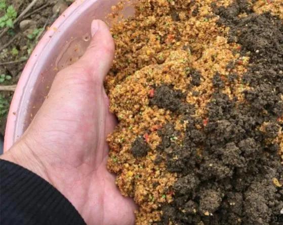 八,窝料混合泥土成团打窝。把窝料和水边的泥土混合在一起成团打窝,它的目的是让窝料在水底存留更长的时间。由于一部分窝料被埋在泥土下面,会随着时间的延长慢慢一点一点的露出来,即使鱼进窝了,也不能很快、在很短的时间内把窝料吃完。因此这种打窝方式很节省窝料,很适合比较长时间地作钓。