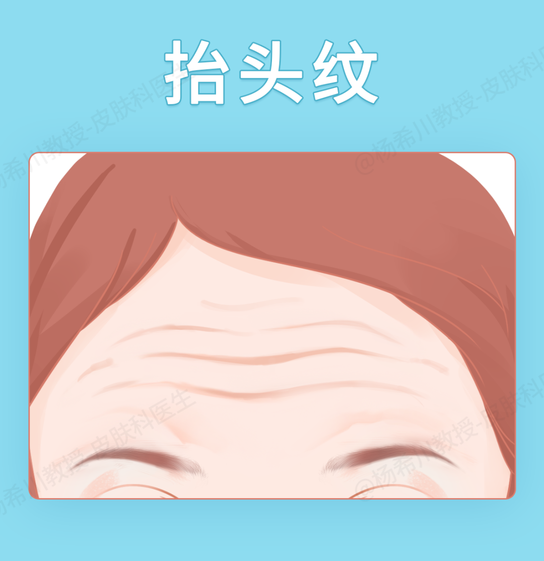 抬头纹、眉间纹、鱼尾纹、鼻背纹、口周纹