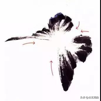 步骤一:浓淡墨侧锋由下而上,由外向内写蝶翅,行笔稍快。↓↓↓