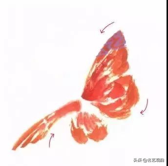 步骤三:朱磦或朱砂染翅臀部和靠近蝶身的部位。↓↓↓