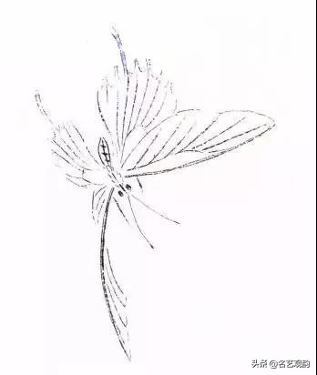 步骤二:继续画蝶翅,注意用笔的虚实变化。↓↓↓
