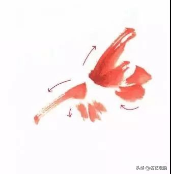 步骤四:还用同一支笔,再调一些藤黄、侧锋由外而内,画翅的另一部分,注意内外用笔的衔接。↓↓↓