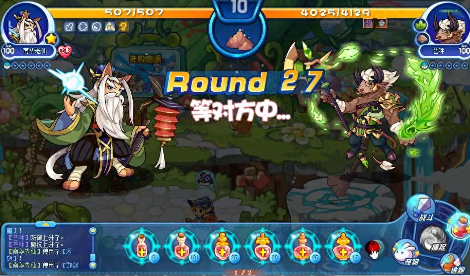 计算公式:0.3×魔攻值+【0.15×(2n-1)】×敌方已损失血量(n为贴的阴符数)注意图中我的“南华老仙”对战“芒种”的时候,只带了一个“南华老仙”这样打起来是比较慢的,大家可以带一个其他宠物换上去输出一下,然后在换回“南华老仙”这样打起来就快的多了,为什么呢?因为我前面公式明显提到了一个“敌方已损失血量”。这就是为什么有的视频当中别人可以30个回合伤害破万,你30个回合甚至只有4000点伤害的原因。因为符咒数量不一样,魔攻值也可能不一样,“敌方已损失血量”也不一样。