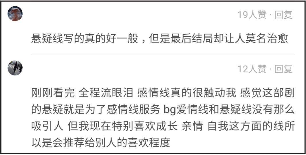 不过粉丝们之所以大赞结局的感情线,主要也是因为此前编剧用大量篇幅去铺陈悬疑线,但这条线却没能令所有人都满意。