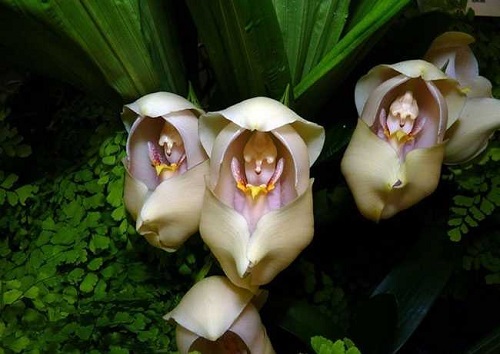 飞鸭兰(Flying Duck Orchid)其花朵侧面像极了一只只凌空飞起的小鸭子,非常生动。原产澳大利亚,但是因为在澳洲本土也不多见,估计培植的也不多,生长习性不清楚。因此用作园艺观赏和科研。