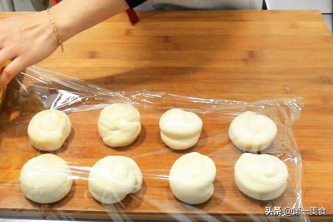10.全部卷好以后盖上保鲜膜饧发10分钟,醒发以后面不易回缩、更易成型。