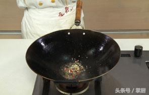 11 热锅注油,倒入洋葱末、青椒末,红椒末、黑胡椒,大火爆香。