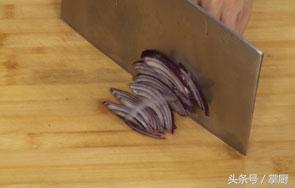 7 热锅注油,烧至五六成热,倒入洋葱,滑油至熟。