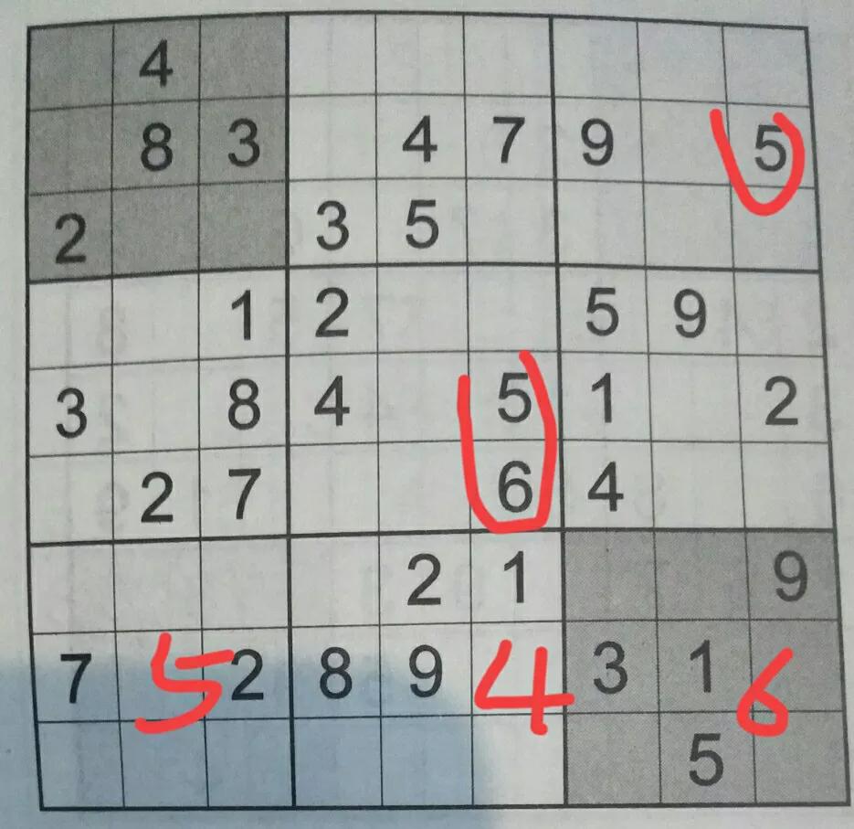 因为黑色阴影九宫格也是不能有重复的数字的。